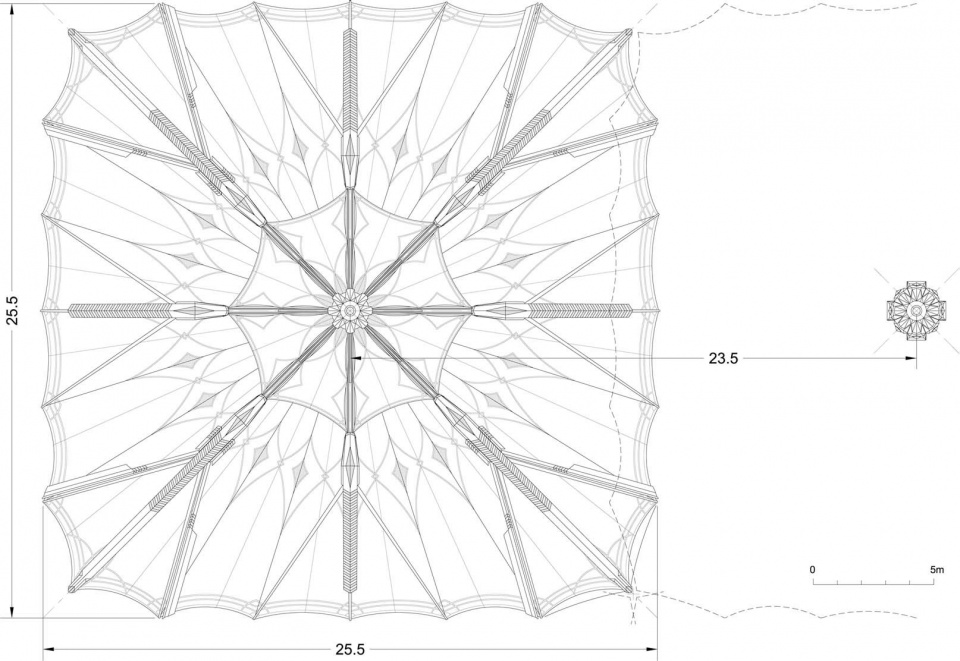 从策划到品控,再到施工管理、项目管理和安装,SL Rasch负责了项目的全部阶段。建筑师设计了一种采用创新折叠臂系统的伞状结构。26×26米的遮阳伞被设置在不同高度,相互重叠,形成了一片连续的顶棚。考虑到前院的朝向,主轴上留出的空隙为人们提供了看向清真寺和尖塔的视野。