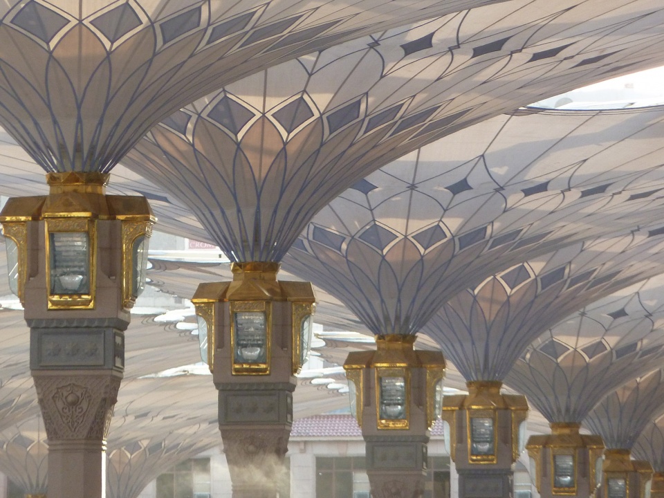 SL Rasch was responsible for the entire project, from planning to quality assurance, construction management, project administration and installation. A type of umbrella with an innovative folding arm system was designed. The 26 x 26 meter umbrellas are arranged at different heights and overlapping, creating a continuous canopy. For orientation on the forecourt, spacings in the main axis provide a view of the mosque and the minarets.